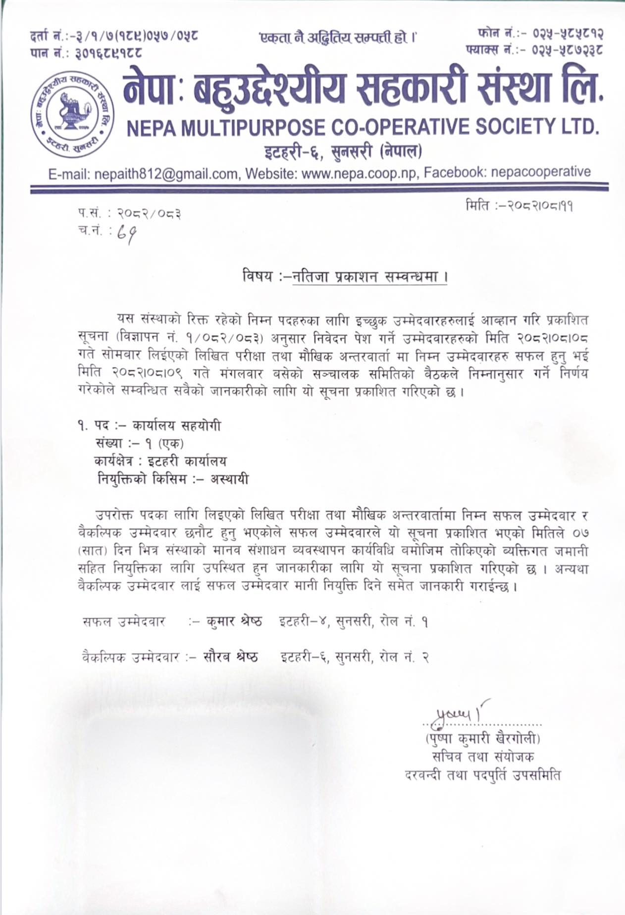 यस् संस्थाको स्विक्रित वार्षिक कार्यक्रम बमोजिम ६६औ राष्ट्रिय सहकारी दिवसको उपलक्ष्यमा संलग्न सुचना बमोजिम सन्चालन हुने कार्यक्रममा उपस्थितीका लागि अनुरोध छ।